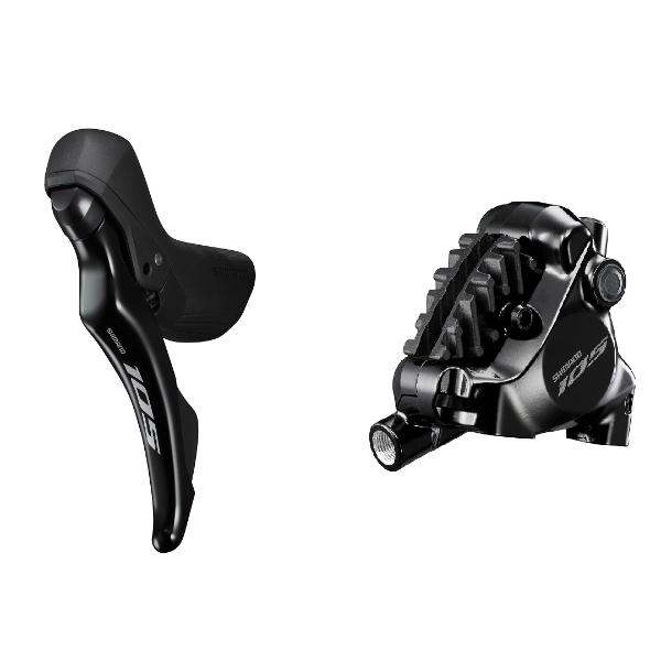 The 105 disc brake combines BR-R7170 caliper and ST-R7120 shift/brake lever for 2x or 12-speed shifting. It has 10% more pad clearance for quieter braking, plus powerful and controllable deceleration. One-Way Bleeding makes it easy to maintain. The two-piece aluminium caliper is light and fits any bike. The ST-R7120 shift/brake lever has a revised ergonomic design, reduced reach, and weighs 200g more than its electronic counterpart.