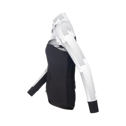 Inspired by shooting stars. From afar, it seems a monochrome design; up close, the striped details become visible. Ride at warp speed! This jacket matches with the Summer 2021 Warp Jersey.